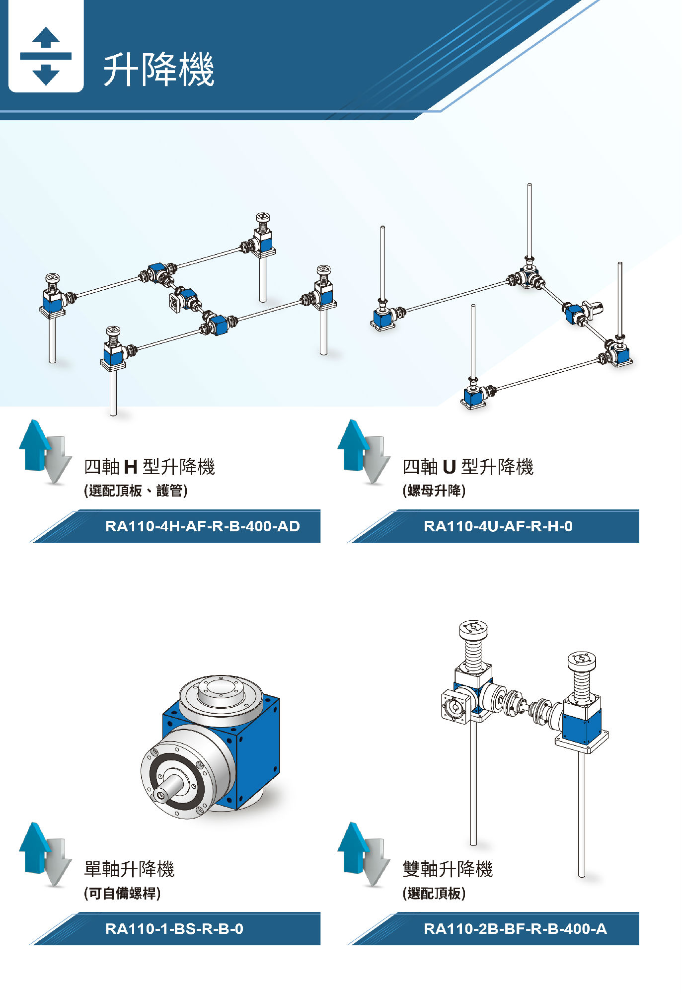 AF系列四軸升降機是U型結構,采用螺母升降。適用于晶片、面板、倉儲、回流線等有垂直升降需求的產(chǎn)業(yè),可替換傳統(tǒng)的氣壓罐與蝸桿設備,同時達到多段與精準控制。