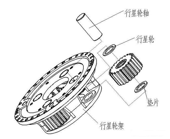 行星齒輪減速機:主要傳動結構為:行星輪,太陽輪,外齒圈。