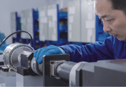 第三步:手持驅(qū)動(dòng)電機(jī),使其軸與行星減速機(jī)輸入端抱緊螺釘垂直,將驅(qū)動(dòng)電機(jī)軸插入行星減速機(jī)輸入端孔,插入時(shí)必須保證兩者同心度一致和二測法蘭平行。如同心度不一致或二測法蘭不平行必須查明原因。另外,在安裝時(shí),嚴(yán)禁用捶打,即可以防止錘擊的軸向力或徑向力過大損壞兩者軸承,又可以通過裝配手感來判斷兩者配合是否合適。判斷兩者配合同心度和法蘭平行的方法為:兩者相互插入后,兩者法蘭基本貼合,縫隙一致。